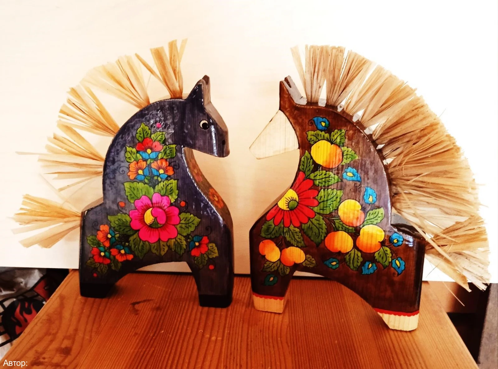 Здесь вы увидите серию «Каляндар народных свят» с народными праздниками в символической форме, циклы «Заповедное», «Евангельские мотивы» и иллюстрации к сказкам Пушкина. На выставке представлено декоративно-прикладное искусство: брутальные фигуры витязей и коней, созданные топором, и расписные формы коней и птиц в мериновской росписи.